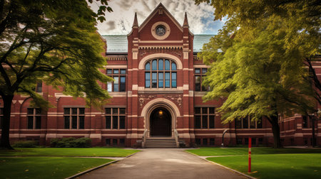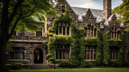 college campus building with ivy-covered walls, created with generative ai