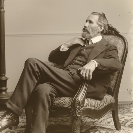 Portrait of a gentleman man in an antique suit. The photo belongs to the Victorian era. US Independence Day.