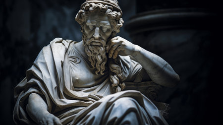 Generative AI, Stoicism concept, sculpture of a stoic, representing philosophy, ancient Greek god statue