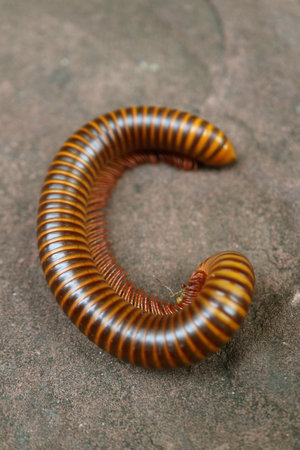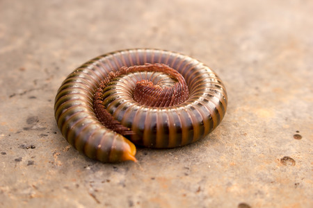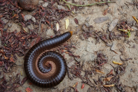 tropical millipede on ground close up