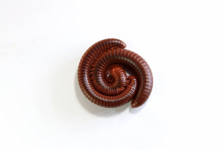 Millipedes are an order of invertebrates belonging to the phylum Arthropoda on white background with clipping path included.