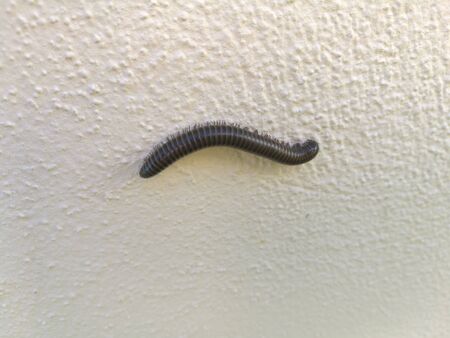 Close up of millipede climb on wall with green bokeh background