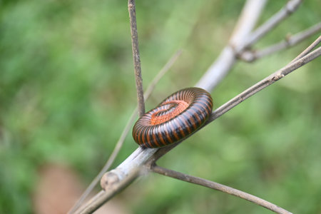 Hi-res photo of millipedes is wrapping themselves on the leaves to protect themselves from danger
