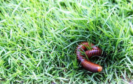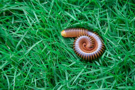 explorer nature millipede with green grass background