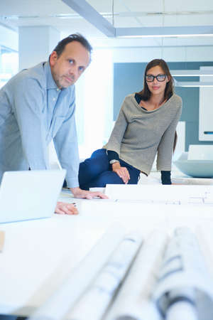 Shot of smart architects working with plans while talking about their new design business in the office.
