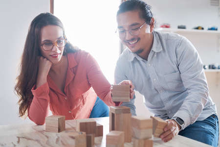 Nothing drives change like innovation. Shot of a young businessman and businesswoman having a meeting with building blocks in a modern office.