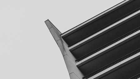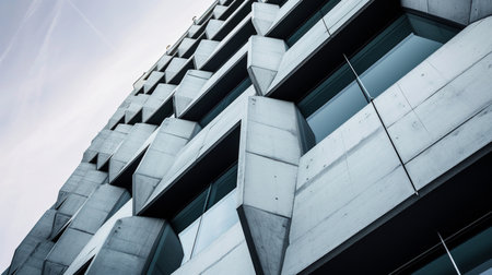Contemporary Architectural Facade with Geometric Concrete Building in Urban Landscape Design
