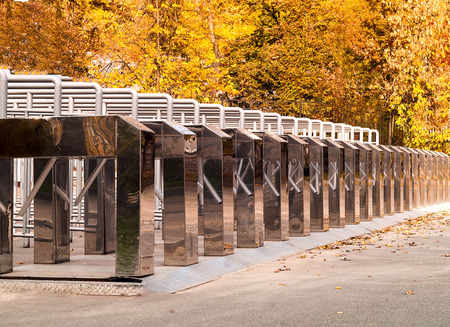 turnstiles to restrict the passage of people outdoors, close, copy space