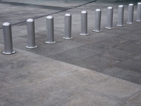Row of Short Metal Poles as Fence for Shopping Trolleys