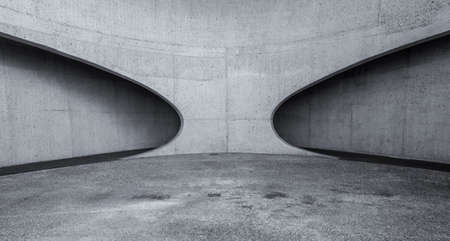 3d rendering of empty concrete room with light and shadow on the curve wall.