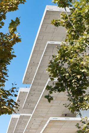 Close-up of a modern concrete building in Spain.