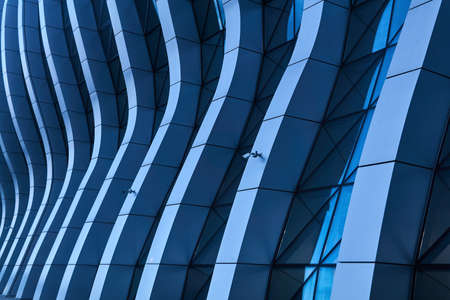 Fragment of a modern building. Modern architecture design. Structural glass facade of modern office building. Abstract architecture fragment.