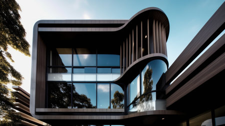 Modern curved architecture exterior design with glass. Generative AI AIG21.