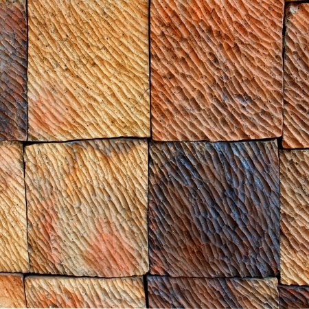 orange and beige tiles for cladding exterior surfaces, texture and color