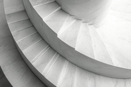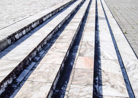 Horizontal perspective view of white stone marble stair steps for background concept design