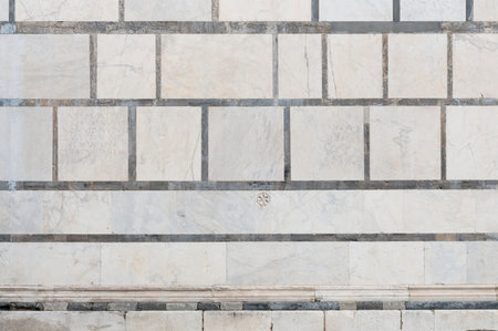 Large marble wall in the side facade of the Carrara cathedral in Tuscany.