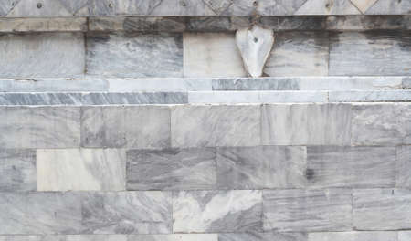 Blue and gray vintage marble ceramic tile textured background on the old building stone brick wall close up.