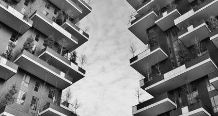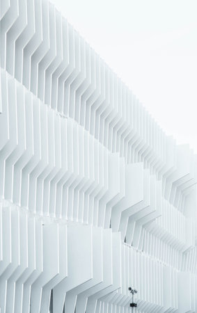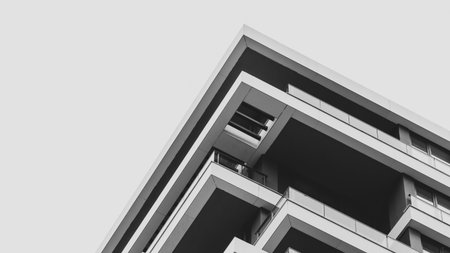 Contemporary Architectural Facade with Geometric Concrete Building in Urban Landscape Design