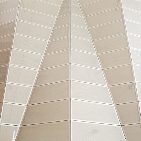 Perforated facade cladding of Dongdaemun Design Plaza or DDP in Seoul, South Korea