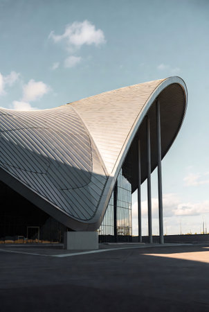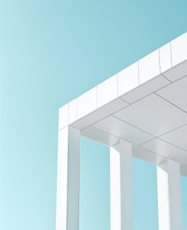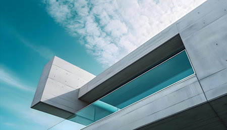 Generative AI : Urban Geometry in Architecture Modern Architectural Building under the Blue Sky Minimal Aesthetics