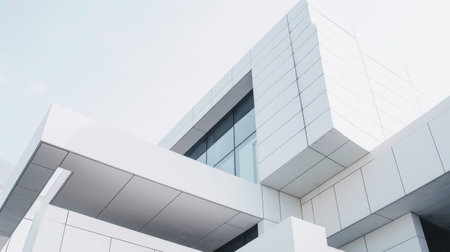 A striking modern building showcases minimalist architecture with clean lines and a geometric window.