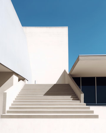 A modern architectural details with clean geometric lines and sharp contrasts between light and shadow. AI generative