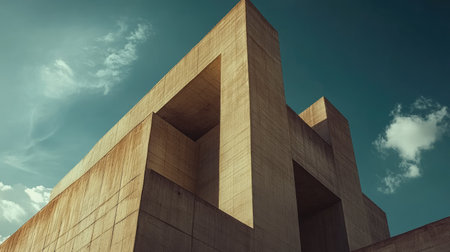 A low-angle view captures the powerful, intersecting planes of a modern brutalist building.