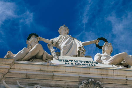 Detail of Rua Augusta Arch in Lisbon, Portugal
