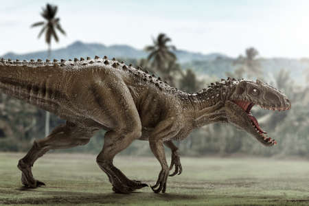 Dangerous predator dinosaur with long teeth