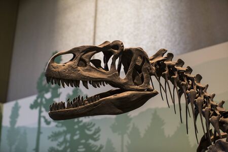 Skull of a Tyrannosaurus rex. Photographic Detail of a Huge Dinosaur dinosaur skeleton
