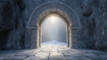 Enchanting Stone Archway to Glowing Dimensional Portal