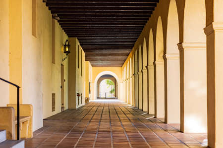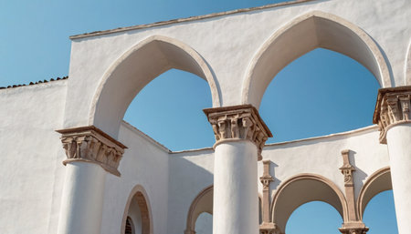 A detailed view of a building featuring beautiful arches and columns. Perfect for architectural projects and historical themes.