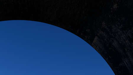 Bright blue sky with dark grey arch above with copyspace