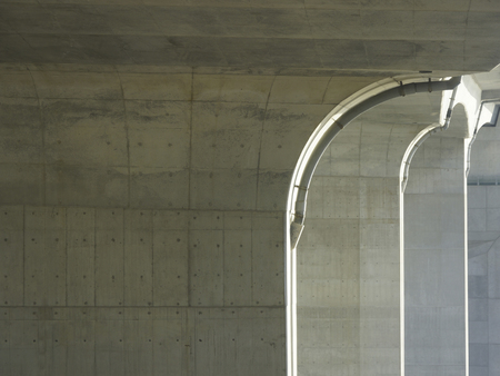 Bottom view of a curved bridge