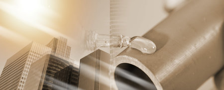 Plumber putting glue on a pvc pipe, closeup; multiple exposure
