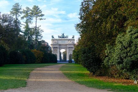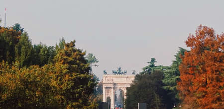 Milan, Lombardy, Italy: historic park known as Parco Sempione at November and the Arco della Pace