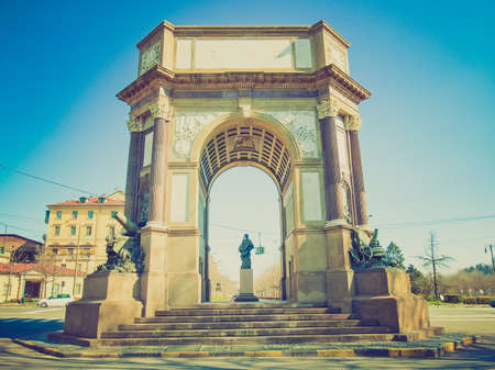 Arc de Triomphe in Genoa, Liguria region, Italy. Toned picture