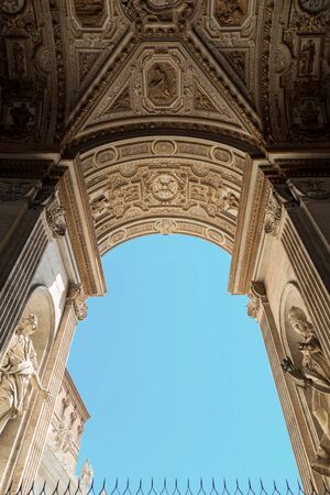 Vatican City, Vatican - August 21, 2018. Saint Peter Basilica. Beautiful ceiling, architectural details. Inside view on blue sky background.