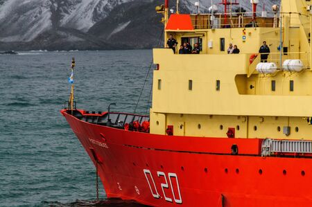 South Orkney Islands, Antarctica. January 18, 2011. The antarctic research vessel Puerto Deseado is seeking shelter in the Antarctic Waters near the Argentinian research base Orcanadas, to evade gale force winds.