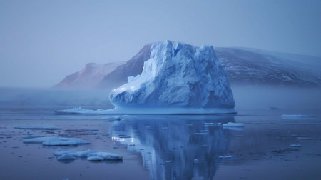 AI Generated. Massive iceberg floats in calm waters under a moody sky at twilight