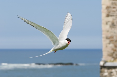Arctic Tern - Sterna paradisaea, Shetlands, UK, beautiful white bird in flight, Atlantic ocean coast.
