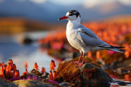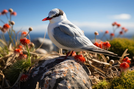 Arctic Tern Bird Sterna paradisiac Perched on Stone. Generative AI