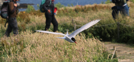 Arctic Tern Sterna paradisaea are spring visitors to nest on the Farne Islands in the UK