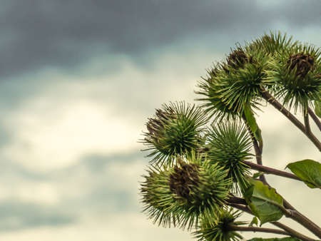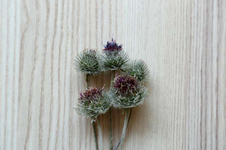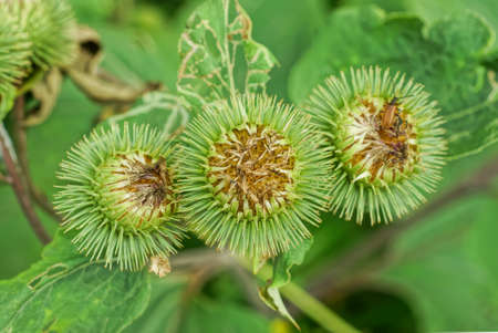 Prickles of a burdock. Picture for pharmacies. Medicinal weed. Nature near us. The plant used in folk medicine. Drug plant shovel large (Arctium lappa)