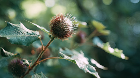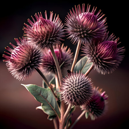 A cluster of prickly burdock flowers. rendered in stunning 3D detail. Perfect for nature themed designs. illustrations. or as a striking accent for your creative projects.
