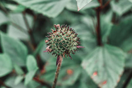 clouse up of burdock green petals in natural enviroment growing next to the river.