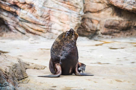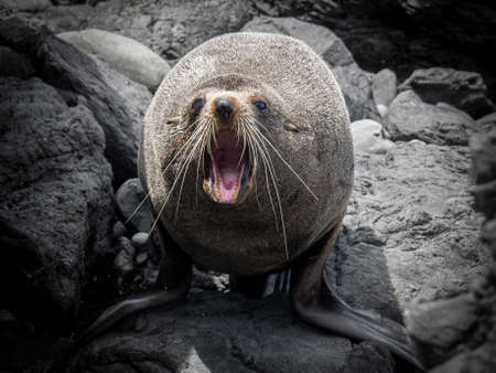 Fur seal chilling at the Pacific Ocean on the South Island of New Zealand