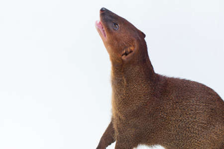 Close up of Javan Mongoose or Small asian mongoose (Herpestes javanicus) isolated on white background