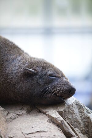 sleeping baby of brown fur seal in Cape Cross colony, Namibia safari wildlife