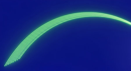 A vibrant, glowing arc of light smoothly transitions from magenta to electric blue against a deep, dark abstract background, creating a futuristic, energetic visual.